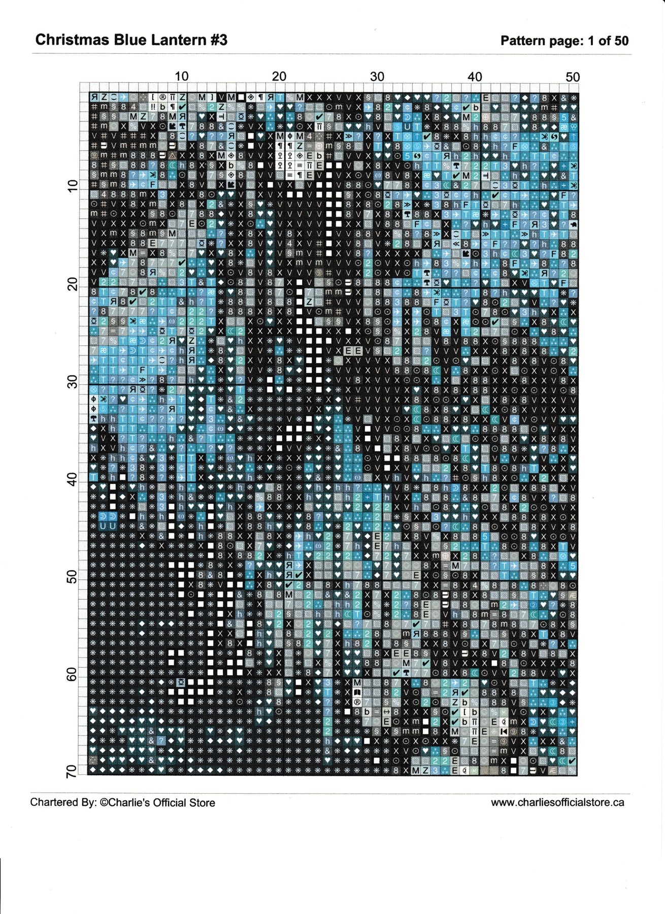 Counted Cross Stitch Christmas Blue Lantern #3 Digital Download PDF File Charlie's Official Store