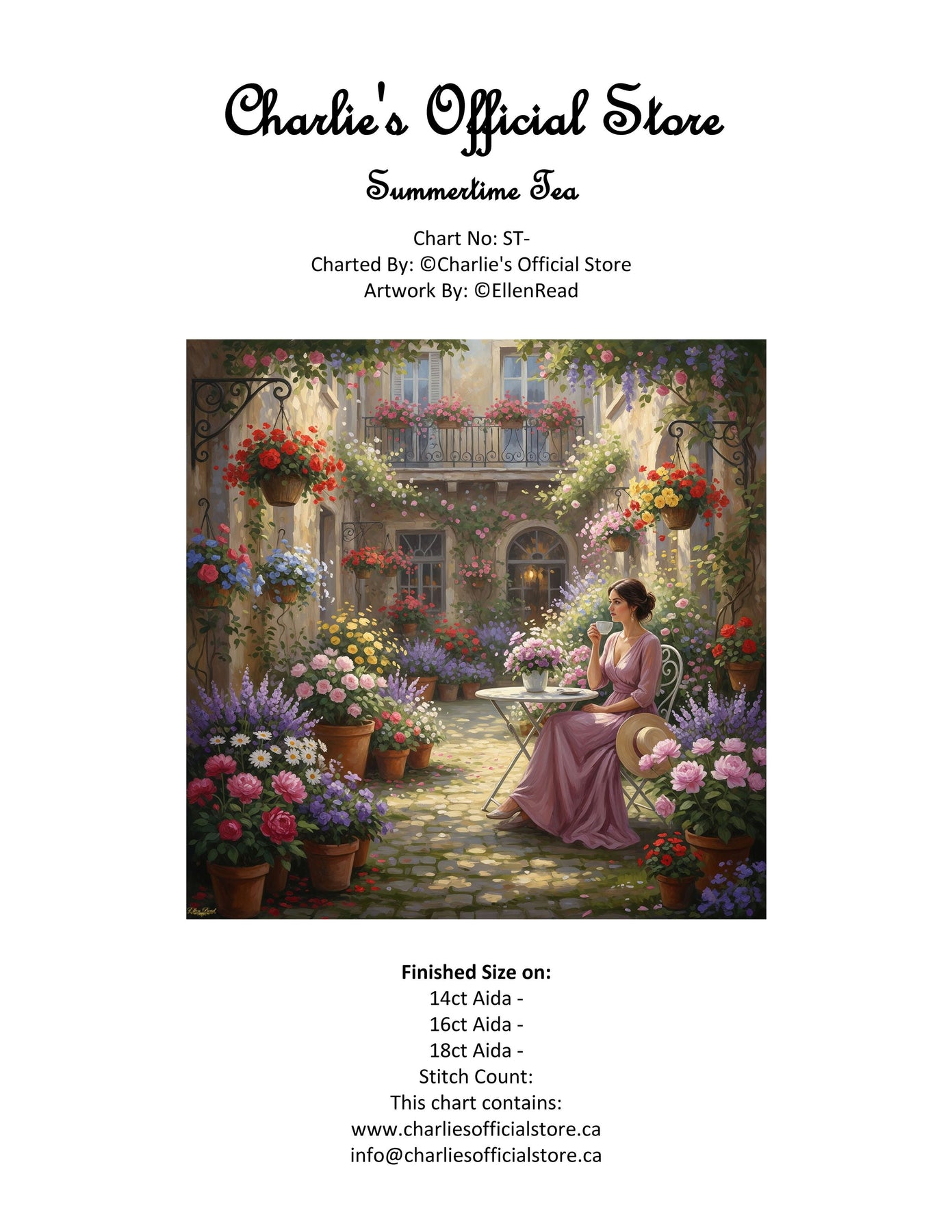 Counted Cross Stitch Summertime Tea Digital Download PDF File Charlie's Official Store