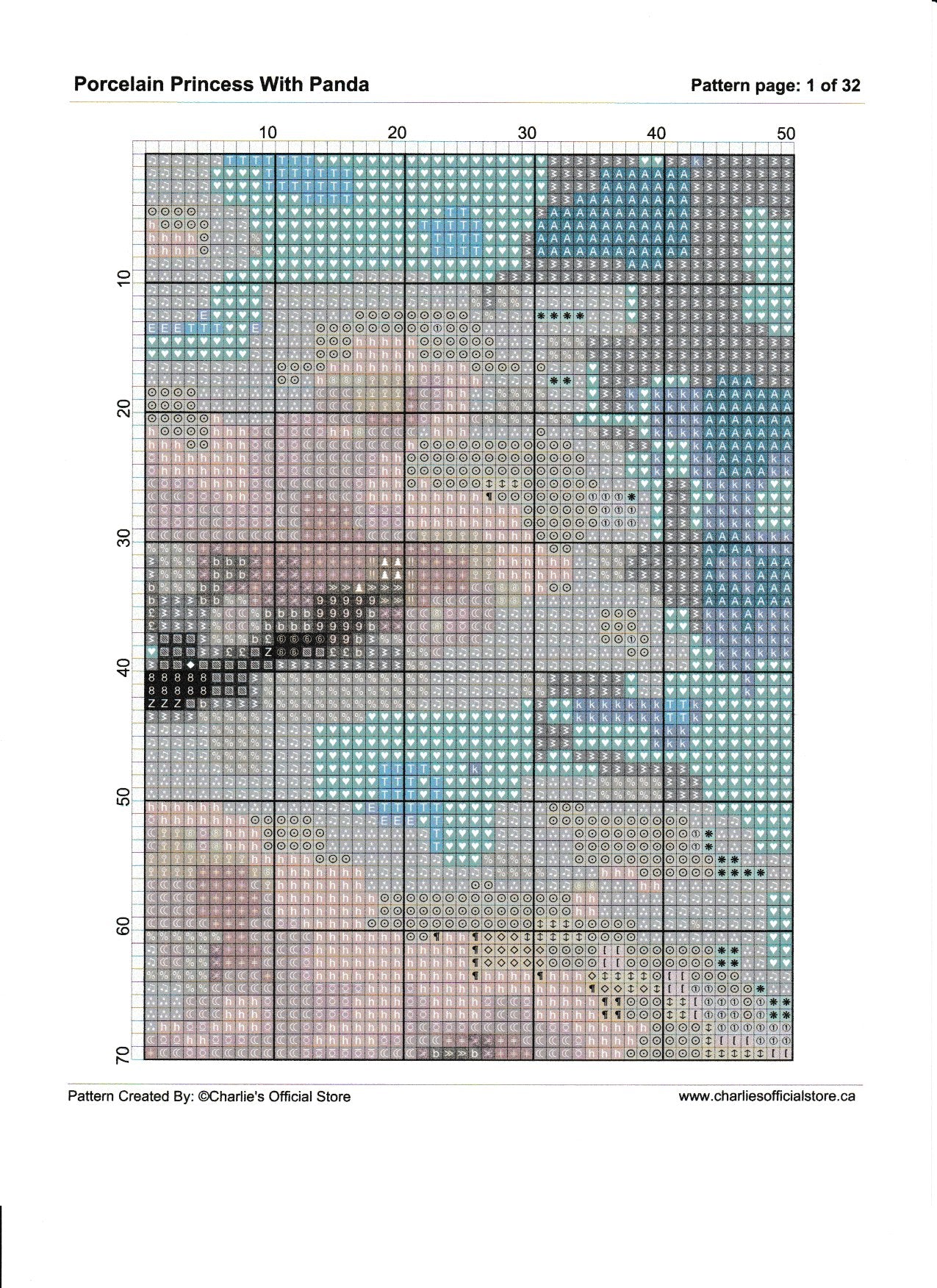 Counted Cross-Stitch - Porcelain Princess With Panda - Full Coverage Licensed Digital Downloadable Pattern