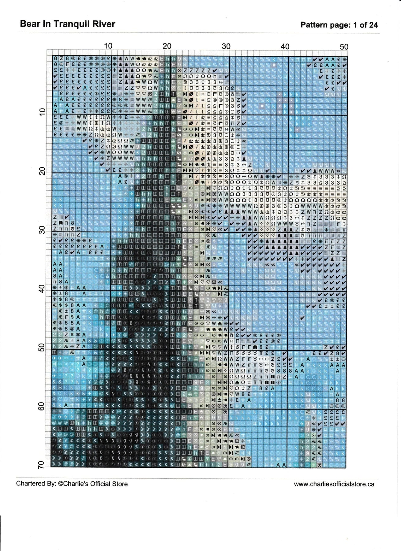 Counted Cross Stitch - Bear In Tranquil River - Digital Download PDF download file (Copy) Charlie's Official Store