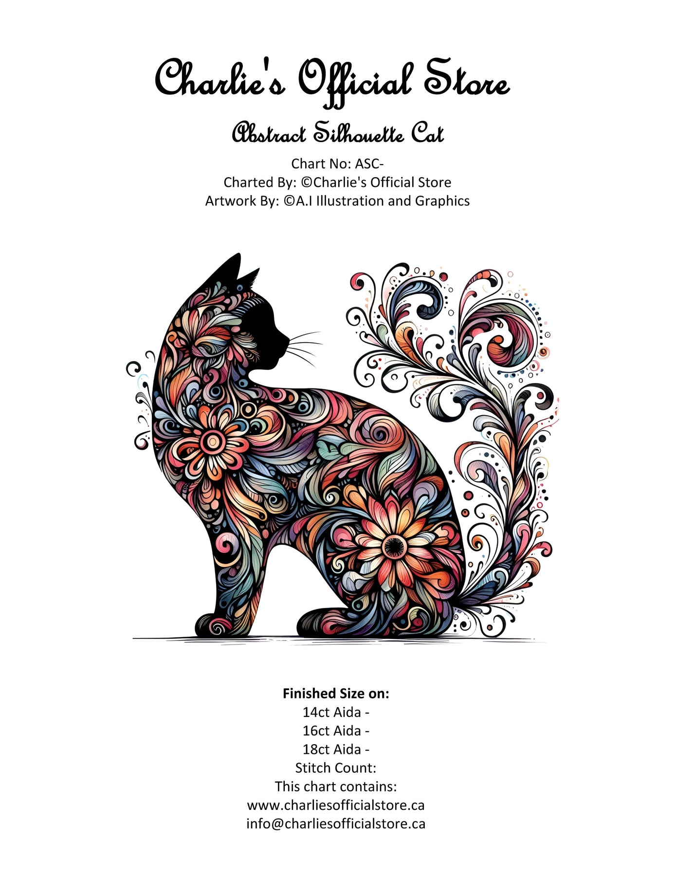 Counted Cross Stitch - Abstract Silhouette Cat - Digital Download PDF download file (Copy) Charlie's Official Store